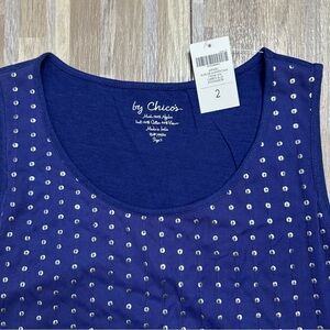 Chico's Navy Blue Tank Top with Silver Sequins, Size 2 (women's size Large/12)