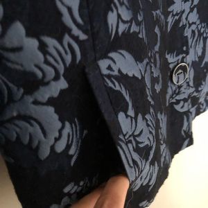 Chico’s Navy Blue/Light Blue Textured Button Down Blazer Jacket Size Large