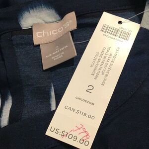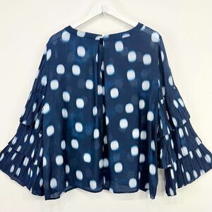 Chico’s Navy Blue White Dot Lightweight Pleat Tiered Flutter Sleeve Blouse NEW