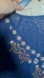 Chico's top with floral embroidery. Dark blue fabric with colorful floral design. Ideal for versatile styling.