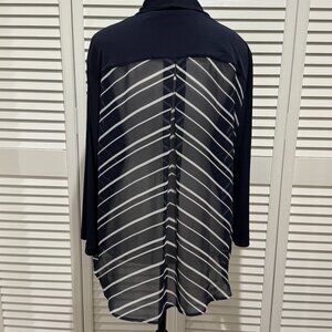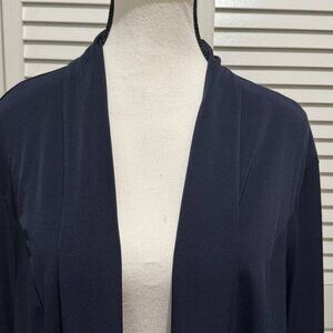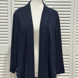 Chico’s Navy Open Front Cardigan/Jacket with Sheer Striped Back – Size 3 (XL)