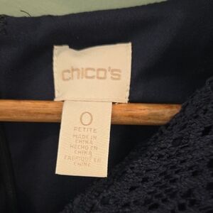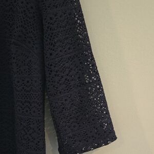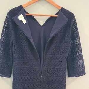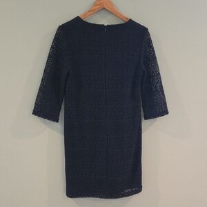 Chico's Navy Sheath Dress Blue Lace 3/4 Sleeve Crew Neck Size 4 (Chico's Size 0)