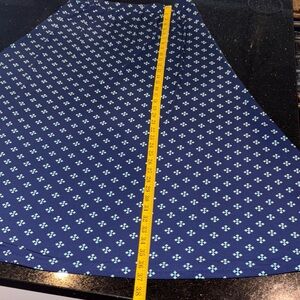 Stylish Chico’s navy maxi skirt with white patterns. Perfect for versatile wear. Stretch at the waist. 15” at waist and 37” long. Chico’s size 1 is equivalent to a M- size 8/10. There is some flex to the waist. Great skirt!