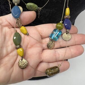 Chico's Necklace Earth Tones Tribal Glass Bead Boho Layers Long Line Adjustable