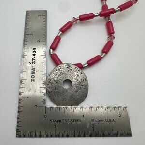 Chico's Necklace Jewlery Statement 33" Adjustable Pink Silver Tone Hammered Long