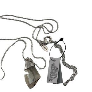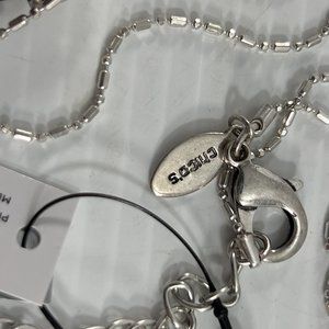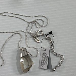 Chicos Necklace Long Strand Faceted Crystal Pendant Silver Tone 20" Adjustable New with Tags