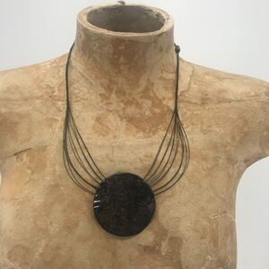 Chicos Necklace Medallion Pendant Necklace Black Bronze 10" Adjustable Clasp