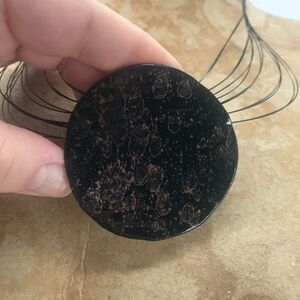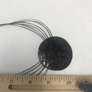 Black Bronze Medallion Pendant hangs from 12 delicate metal strings