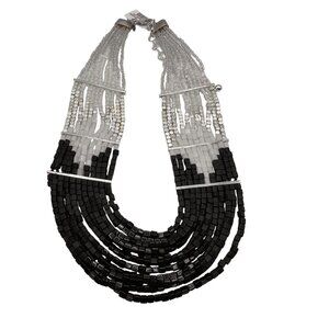 Chico's Necklace NWT Jewlery Statement 21.5" Adjustable Beaded Silver Tone Black