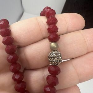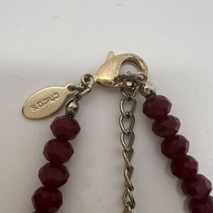 Chico's Necklace Red Beaded Pendant Chunky Adjustable Rhinestone Brass Antiqued Bin4