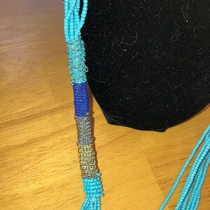 Chico's Necklace - multi-strand beaded turquoise blue and gold