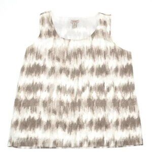 Chicos Neutral Earthtone Tan Taupe Ivory Cream Chevron Ikat Knit Tank Top 2 L