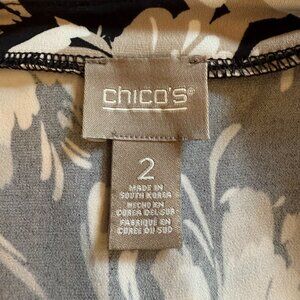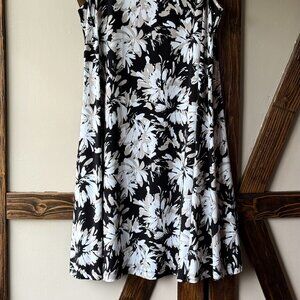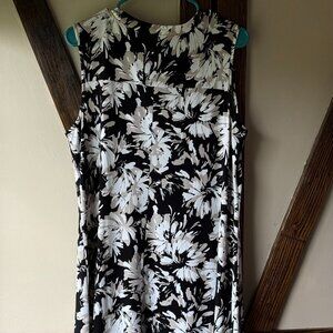 Women's Floral Sleeveless Dress in Neutral Colors of Black, Tan and White. Designer: Chico's. Size: 2 (Large). Excellent Condition.