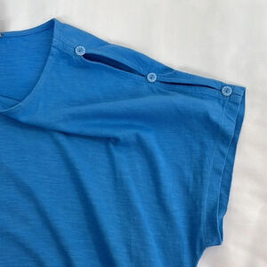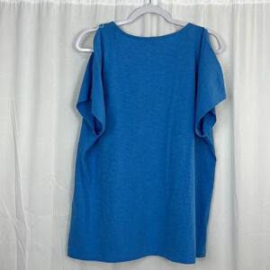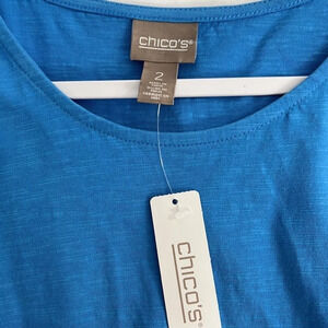 Chico’s New Peek-A-Boo Short Sleeve Cotton Top In Laguna Blue