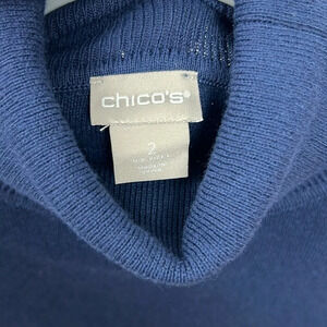 Chico’s New Women’s L Turtleneck Stretchy CoolMax Technology Navy Blue Sweater