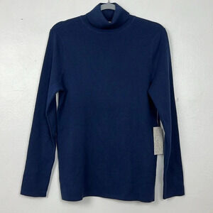 Chico’s New Women’s L Turtleneck Stretchy CoolMax Technology Navy Blue Pullover Sweater