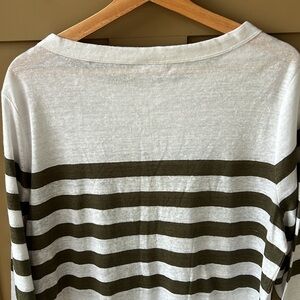 Chico’s New w Tag Striped 100% Linen Knit Top 3/4 Sleeve Large. White Green
