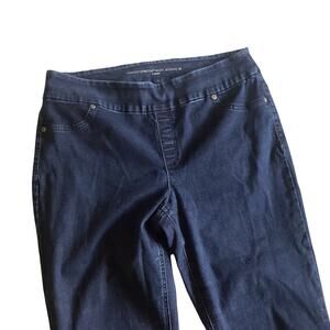 Dark blue wash Chico’s denim pull on Nicky jeggings in good preowned condition. No flaws.