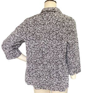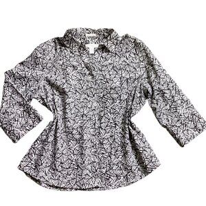 Chico's No Iron 100% Cotton Button-Up Top Sz 2 L/12 Black & White 142P