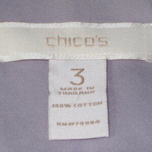 Chicos No Iron Size 3 XL Lavender Lilac Purple Effortless Wrinkle Free 3/4 Sleeve Cotton Hidden Button Excellent