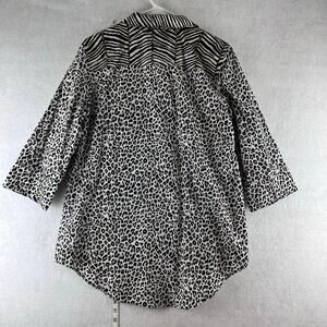 Chicos No Iron Button Up Blouse Animal Print Sz 2 (Large) 100% Cotton Mature