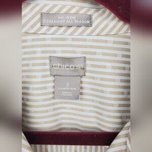 Chico’s No Iron CoolMax All Season Button Down Cream & white stripes Size 3