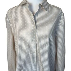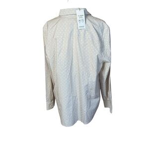 Chico’s No Iron CoolMax All Season Button Down Tan White Stripes Size 3 (16-18)