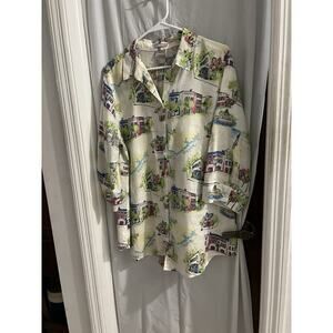 Chicos No Iron French Quarter Travel Linen Button Up Blouse Sz 2-12/14