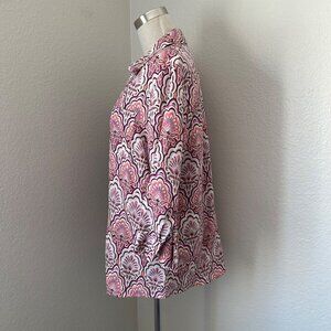 Chico's No Iron Linen Button Up Casual Blouse 3/4 Sleeve Chest Pocket Pink Paisl