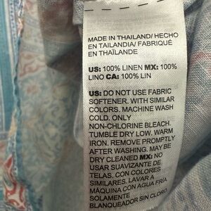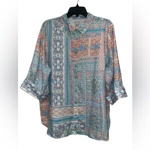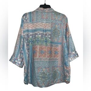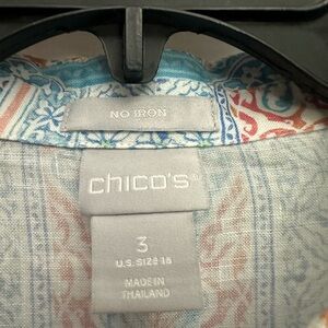 Chicos No Iron Linen Coastal Tile Shirt Size 3 16 Button Up 3/4 Sleeve