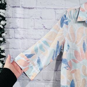 Chicos No Iron Linen Multi Colored Printed Shirttail Hem Tunic Size 2 Large