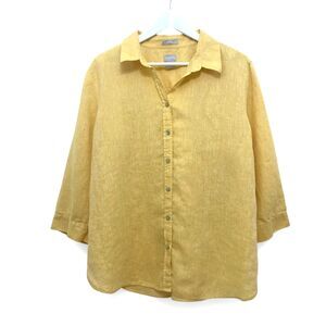 Chico's No Iron Linen Shirt Size 3 / XL Button Up 3/4 Sleeve Bright Yellow Top