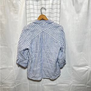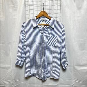 Luxe stripes and lovely linen? This shirt is a keeper. It's styled in a cooling, moisture-wicking (and wrinkle-free) fabrication, with a chest pocket and 3/4-sleeves.