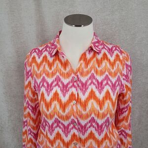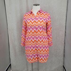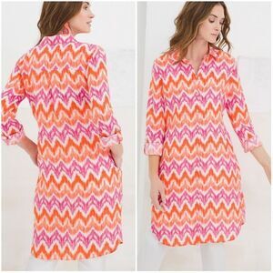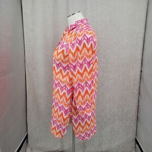 Chico's No Iron Linen Pink Orange Chevron Maxi Shirt Tunic Size 3 Women's Plus