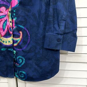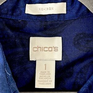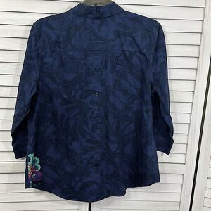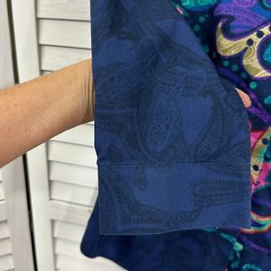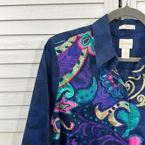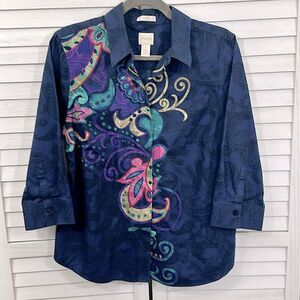 Chico's No Iron Shirt Size 1 Size 8 Blue With Vibrant Paisley Print