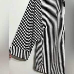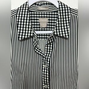 Chicos No Iron Stain Shield Stripe and Gingham Plaid Cotton Button Up Shirt