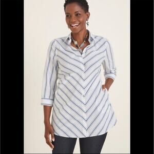 Chico's No Iron Stain Shield Striped White Button Down Tunic Size Small