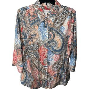 Chicos No Iron Top Womens Large Multicolor Paisley Print Button Up Long Sleeve
