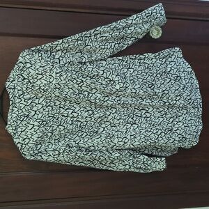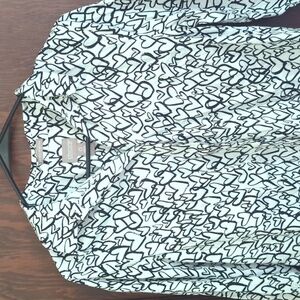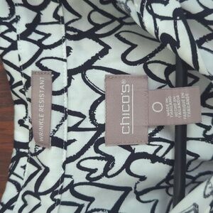 Chico's No Iron White With Black Hearts Long Sleeve Button Down Shirt Size Small