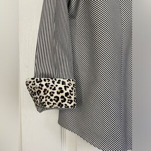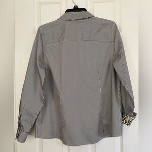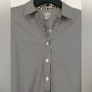 Chico’s No Iron White shirt,Pinstriped Black, collared, Button Front, Preppy, Office, Boss Lady. Chico’s Size 1