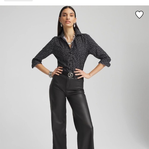 Chico's No-Iron Black and White Polka Dot Shirt Size 12