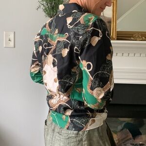 Chicos No-Iron Chic Status Shirt Effortless Size 0 US Small Print Long Sleeve