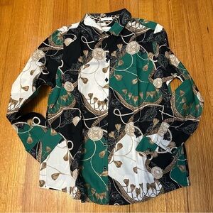 Chicos No-Iron Chic Status Shirt Effortless Size 0 US Small Print Long Sleeve(a2