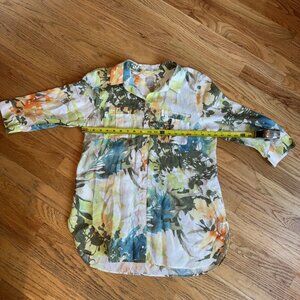 Chico's No-Iron Linen Floral Paradise Shirt Size: 2 US Size 12