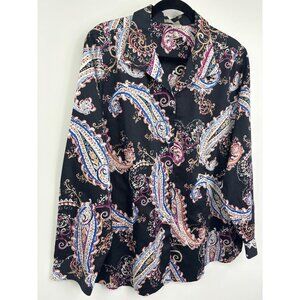 Chico's No-Iron Paisley Long Sleeve Button Up Cotton Shirt Black Sz 3 (16) XL