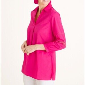 Chico's No-Iron Pop-Over Top Size 3 XL 16/18 Cotton Stretch Ladder Sleeve V-Neck