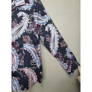 This is a Chico's No-Iron Sateen Paisley Wing-Collar Button-Up Shirt Size 1 Medium