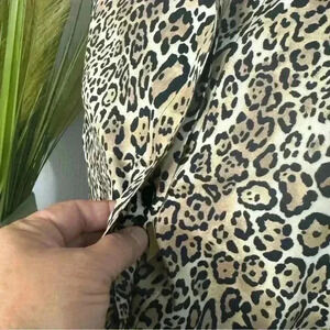 Add some wildness to your wardrobe with this Chico's long sleeve button-down blouse. The bold animal print, coupled with the collared neckline and down fabric type, makes for a striking statement piece. The blouse is available in size L and is made of 100% cotton material, ensuring comfort and ease of wear. Perfect for a casual day out or a themed party, this blouse is a must-have for any fashion-forward woman.