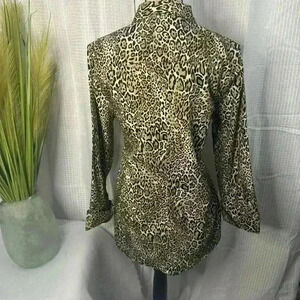 Chico's No-Iron Womens Long Sleeve Button Down Blouse Animal Print 2 Large