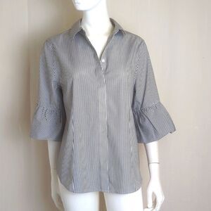 Chico's Non-iron Button Down Blouse Black and White Stripe Size 1
